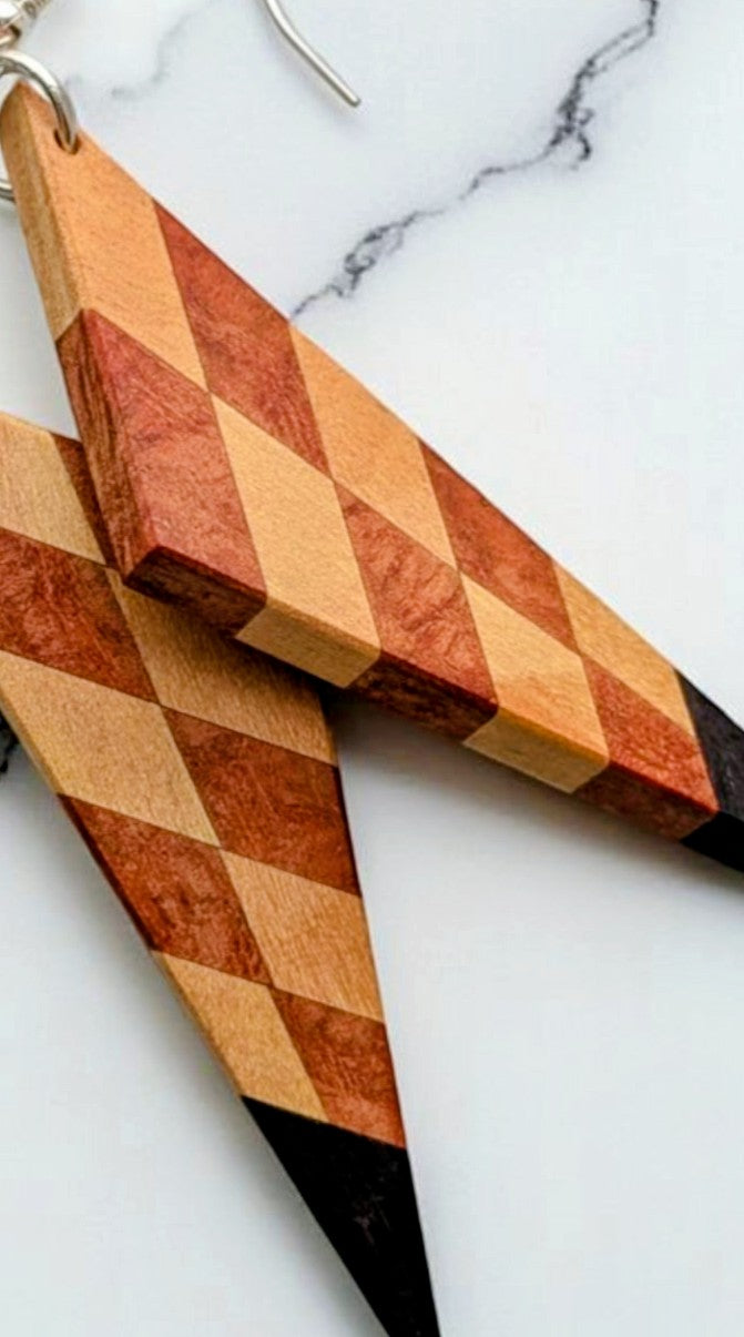 Diamond Earrings - Yellowheart, Thuya Burl & African Blackwood